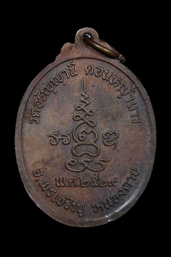 เหรียญรุ่นแรก (พระครูบวรธรรมรักขิต) หลวงตาเลิศ ชินวังโส วัดอรัญญานี อ.พรเจริญ จ.บึงกาฬ ปี 2529